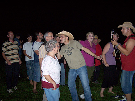 In der Zwischenzeit wurde schon das Lagerfeuer angezündet. Zu gerne hätten wir dort Platz genommen, aber unser Auftritt hatte Vorrang. Weiter mit den Bildern. |