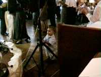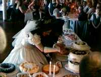 die Tortenschlacht beginnen konnte, mußte das Brautpaar die Hochzeitstorte