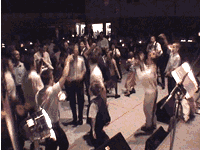Auf der Tanzfläche wurde eine Polonaise durch die ganze Halle angestimmt. |