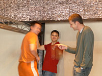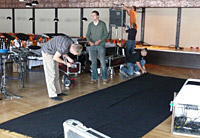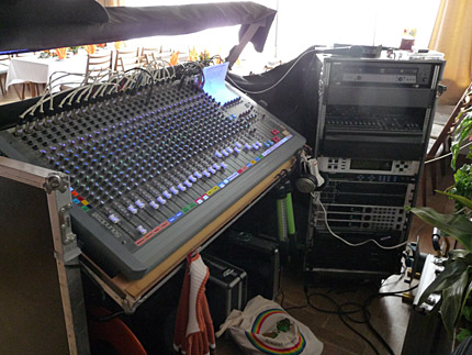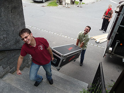 Im Festsaal füllte sich die Tanzfläche. Allerdings nicht mit Gästen sondern mit unserem ganzen Equipement. In den nächsten Stunden zauberten wir daraus eine ansehnliche Bühne. |