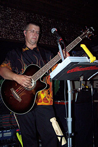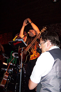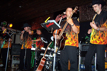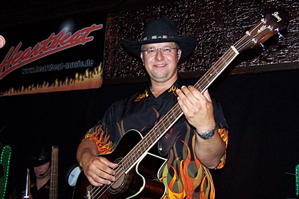 Die Bühne reichte gerade für uns. Zum Glück haben wir keine großen Monitorboxen mehr dabei. |
