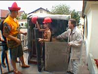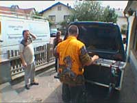 Die Sicherheitsanforderungen werden immer strenger. Sogar zum Ausladen müssen jetzt Bauhelme getragen werden. Birdy läßt da nicht mit sich reden. |