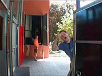 Durch dieser Türe konnten wir unser Equipment aus dem Anhänger direkt auf die Bühne ausladen. |