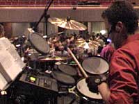 Die Schaltzentrale seines elektronischen Drumsets ist ein Roland TD-10. |