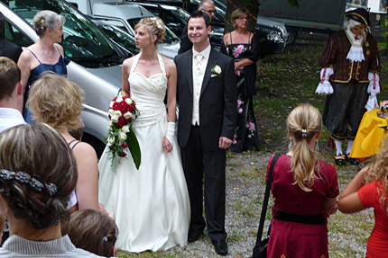 Zumindest die Braut ist zu sehen. Der im Roten Hemd ist "nur" der Fahrer. Ach ja, der Vater der Braut ist er auch noch ;-). |