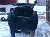 Samstag, 27. Dezember 2003: Wenn wir einen Auftritt haben, beginnt für uns die Vorbereitung darauf, immer schon am Tag vorher. Im Proberaum muß alles abgebaut, eingepackt und verladen werden. |