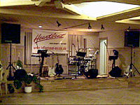 Das Brautpaar war sichtlich ergriffen von diesem Anblick. In gewohnter Manier war auf der Bühne alles sauber und ordentlich aufgebaut. Die Bühne selbst war etwas klein und akustisch nicht sehr vorteilhaft, aber unsere Crew hat alles in den Griff bekommen. |