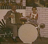 Bild ist mein Opa und ich mit meinem ersten Schlagzeug zu sehen.